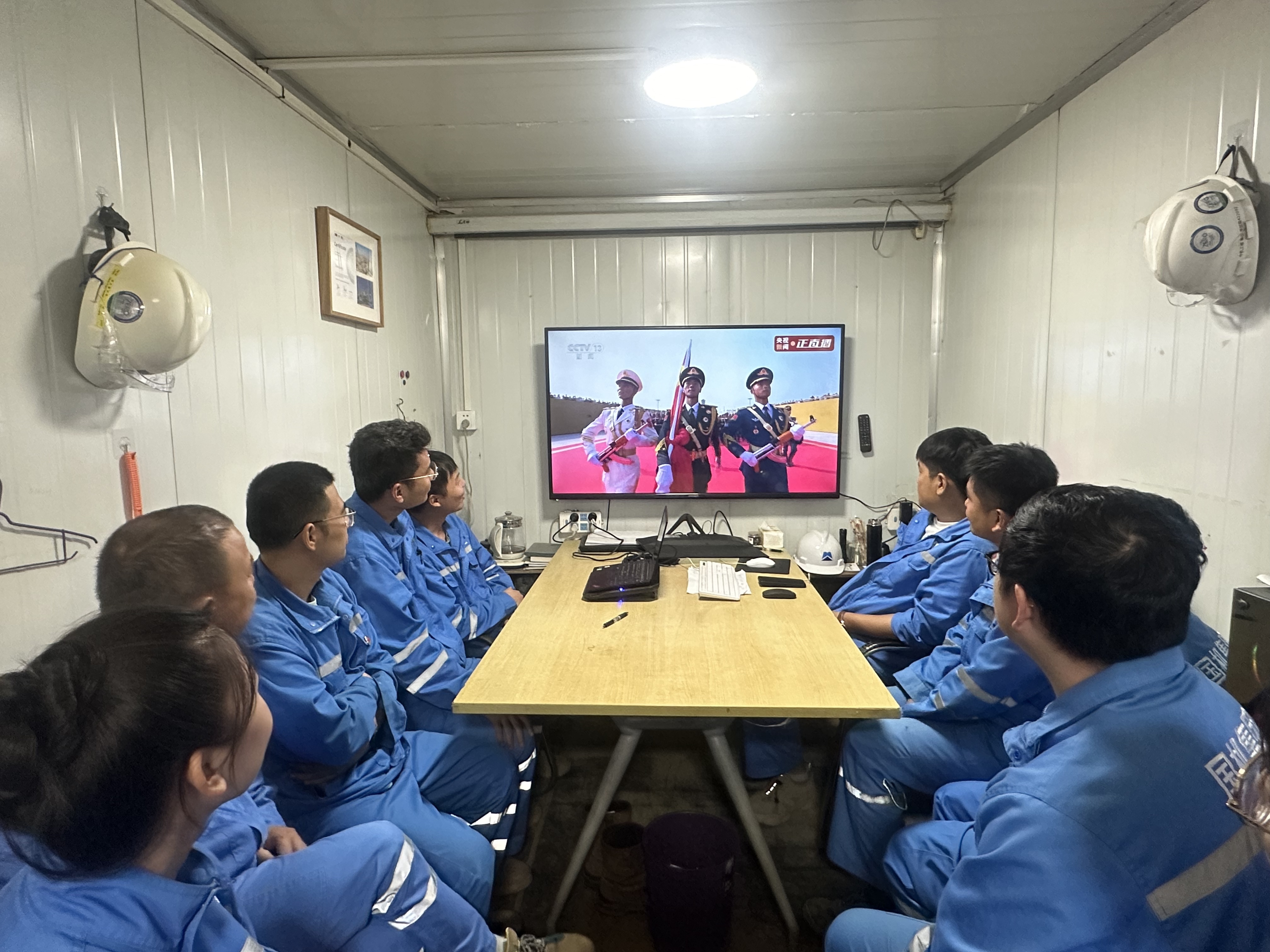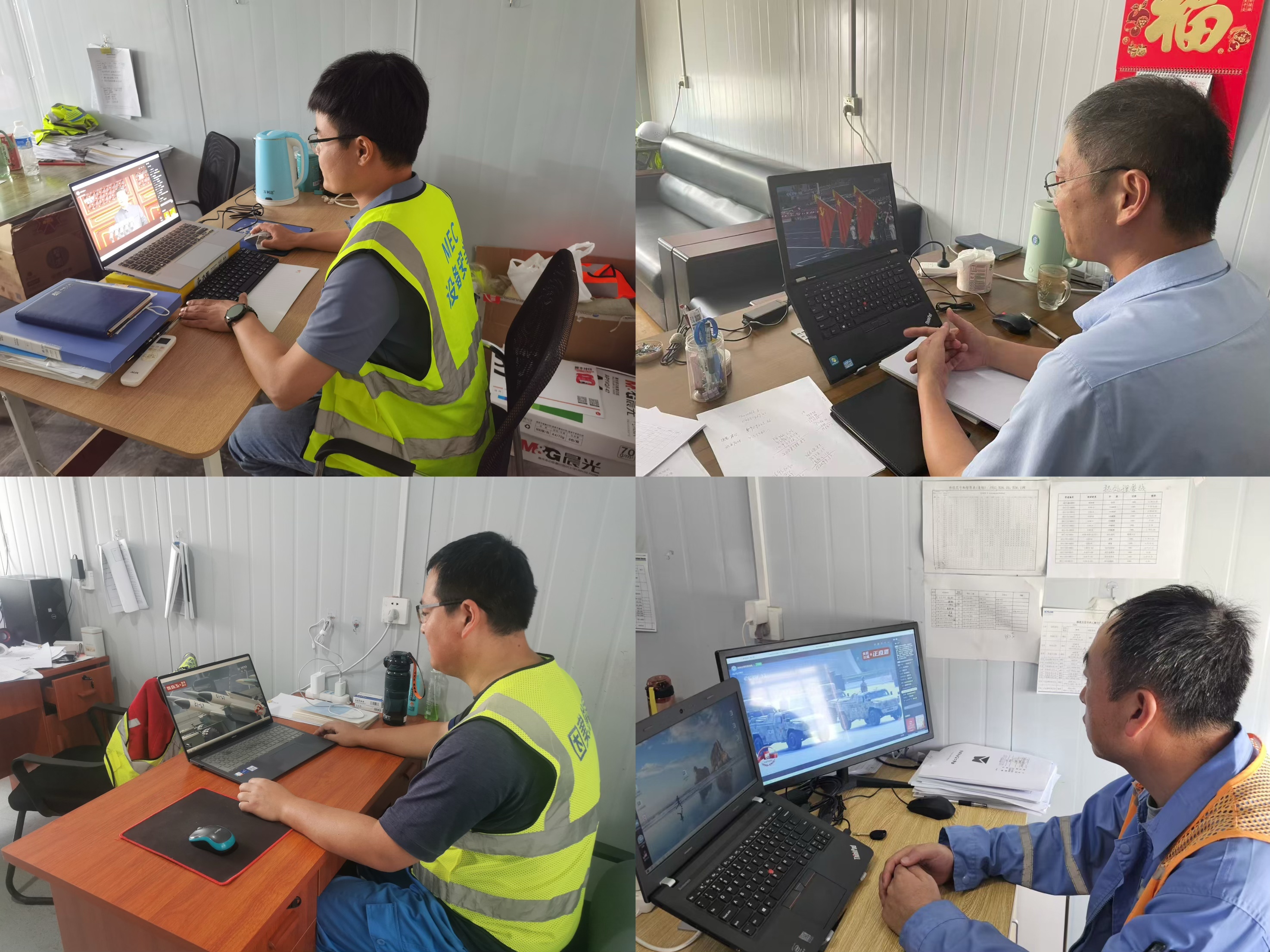 中機工程干部職工、一線建設(shè)者通過多種方式觀看直播盛況,銘記歷史、緬懷先烈、汲取力量。